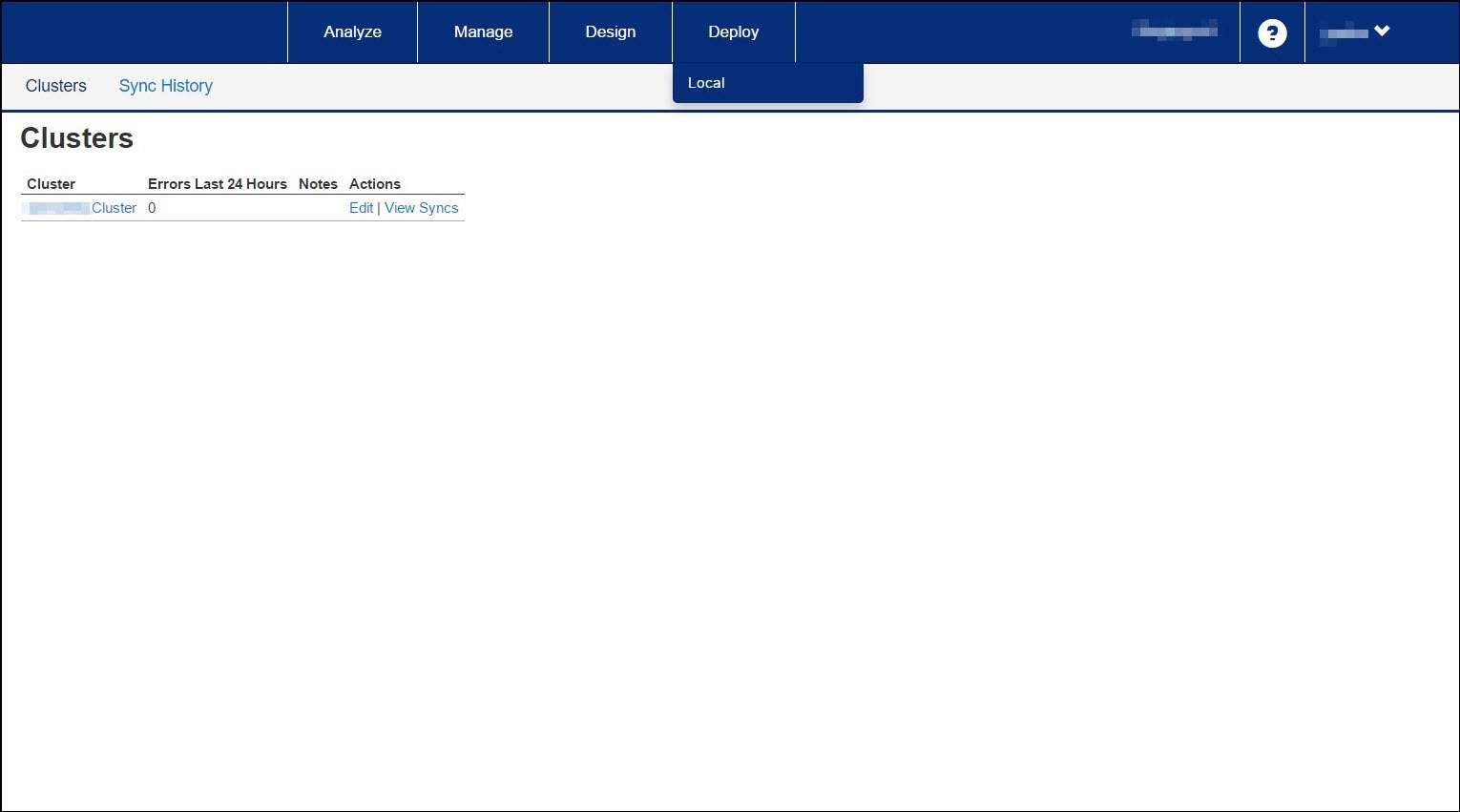 - View Syncs: Displays the syncs associated with the cluster on the Sync History page.