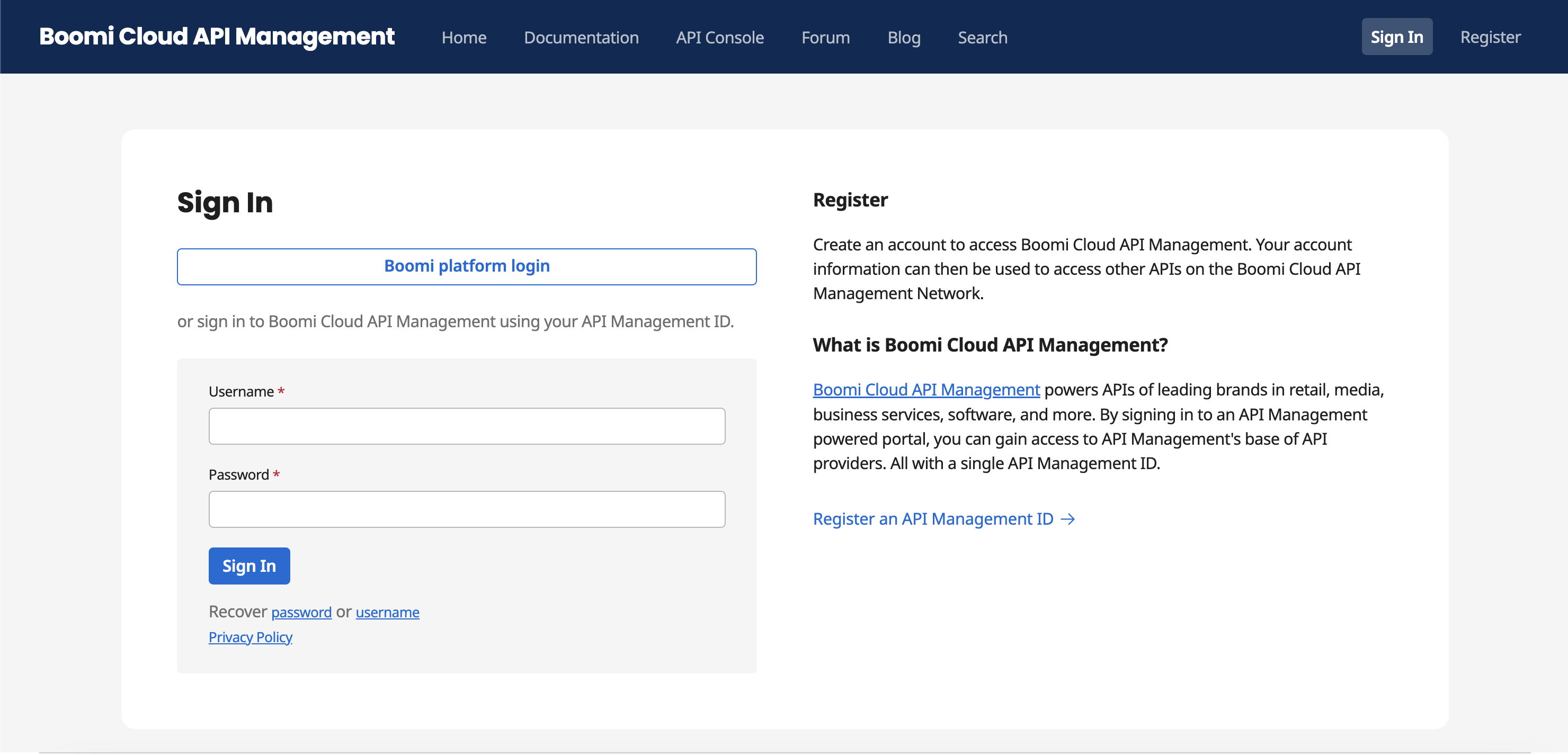 Sign-In to Cloud API Management via Boomi Platform