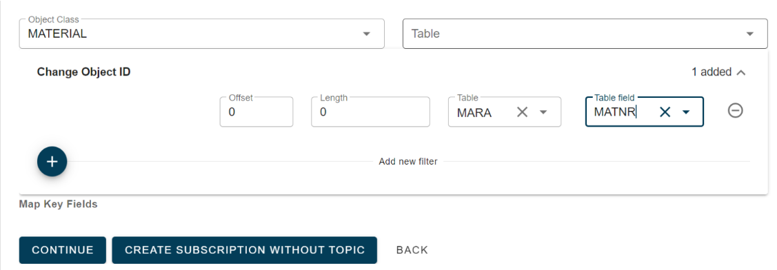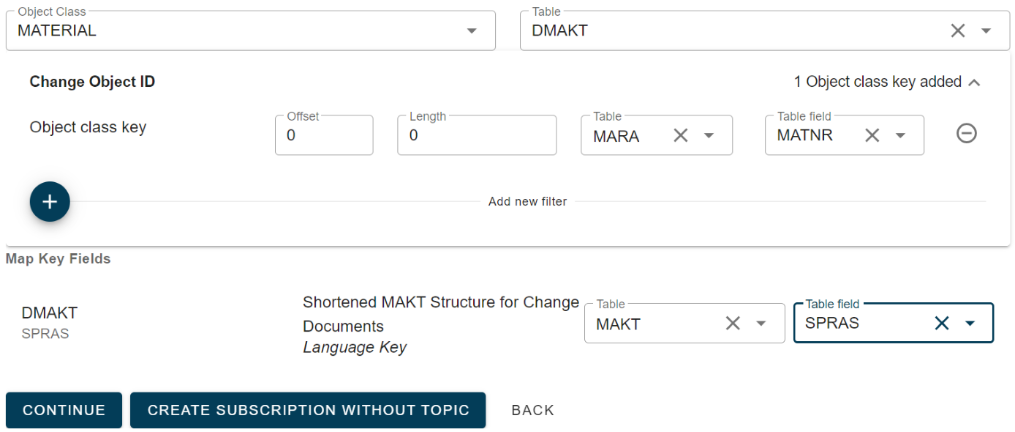 Not all event key data needs to be mapped because, for instance, if there is a change to MARC (key material (MATNR) and Plant (WERKS)), the subscription may be linked to a custom material table with only the material as the key. Therefore, only this field needs to be mapped.