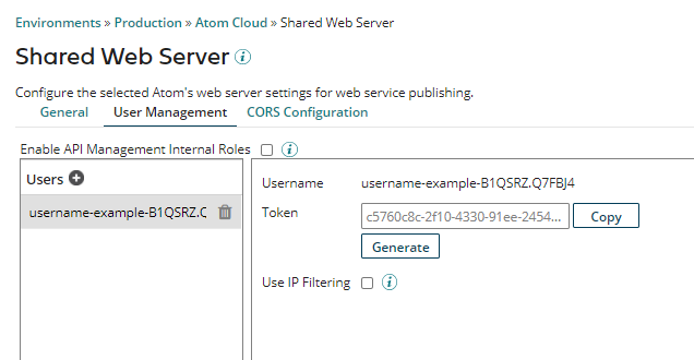 - Go to the Shared Web Server settings on the runtime you want to connect to.