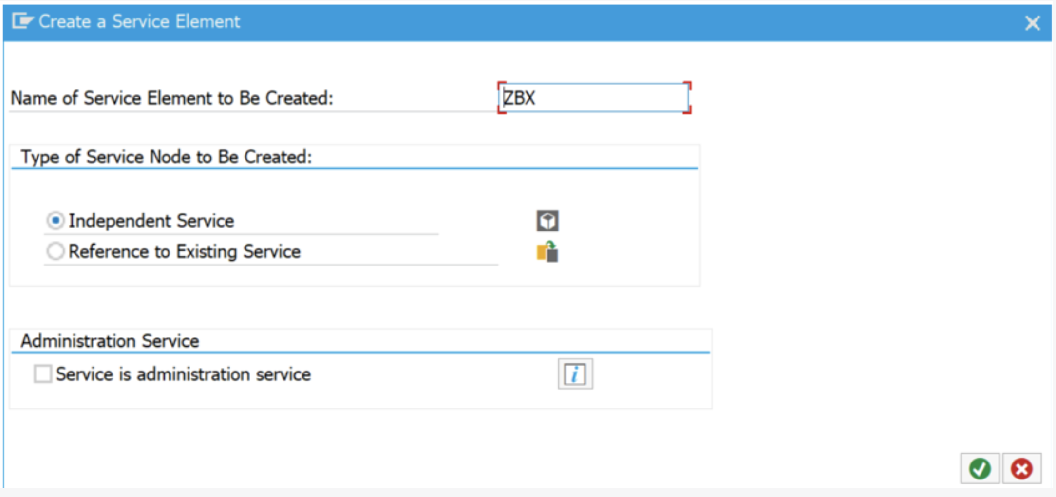 - Enter ZBX as the service name. Choose Independent Service. Press ENTER to input the service name.
