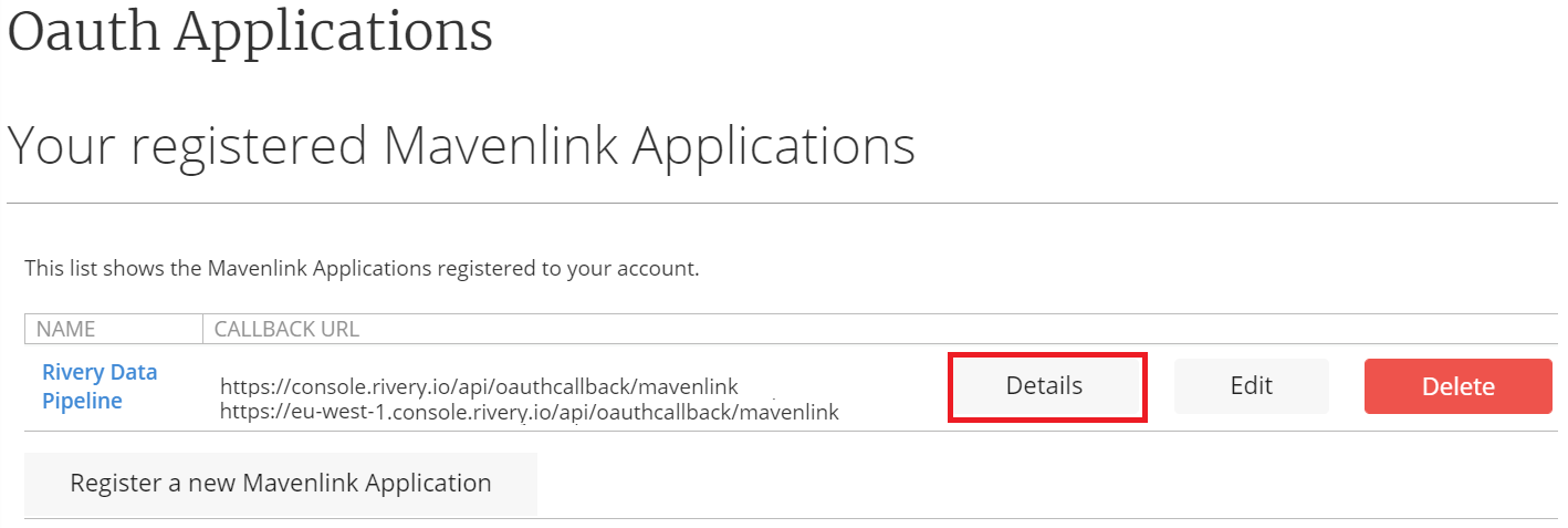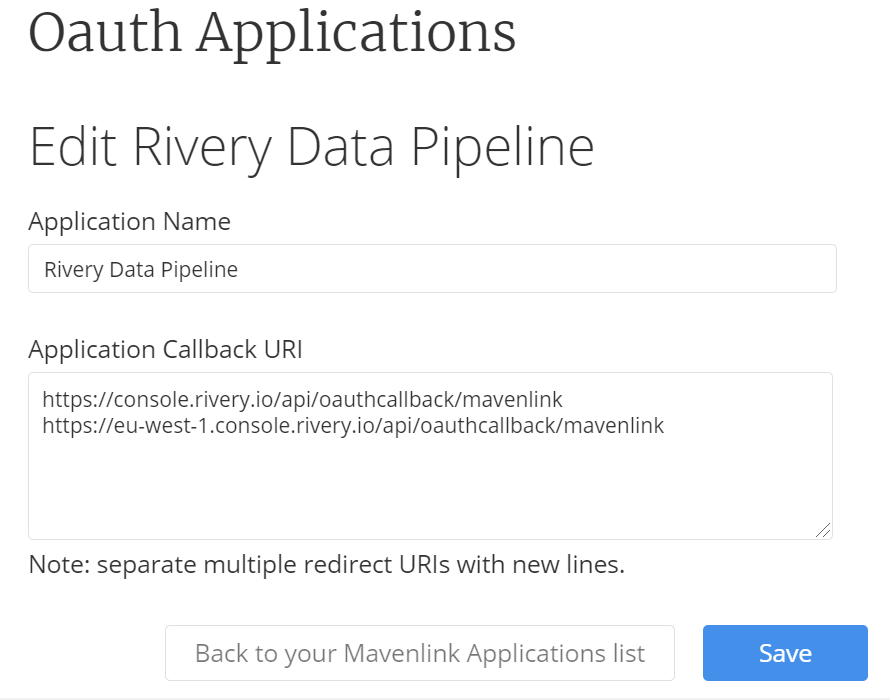For accounts using https://console.rivery.io: https://console.rivery.io/api/oauthcallback/mavenlink