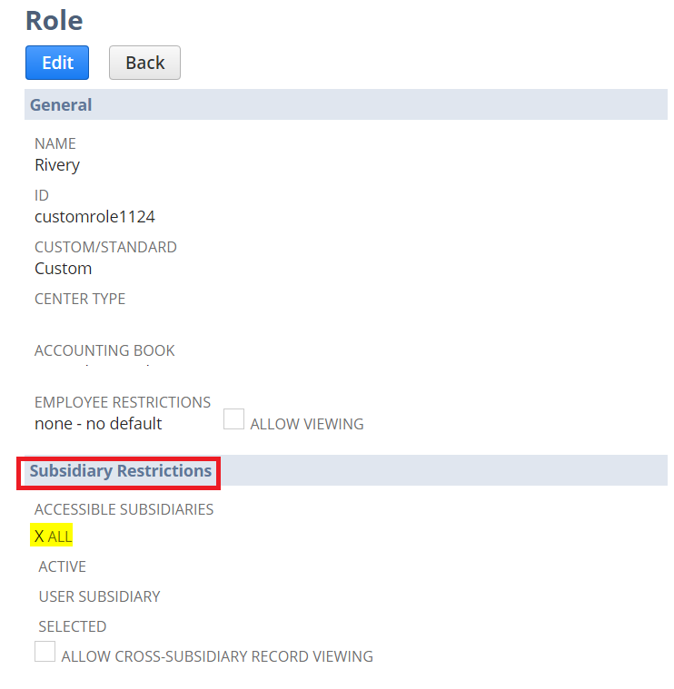 Below is an example of permission needed to fetch all records. When the restriction were not set to all accessible subsidiaries fewer data would return.