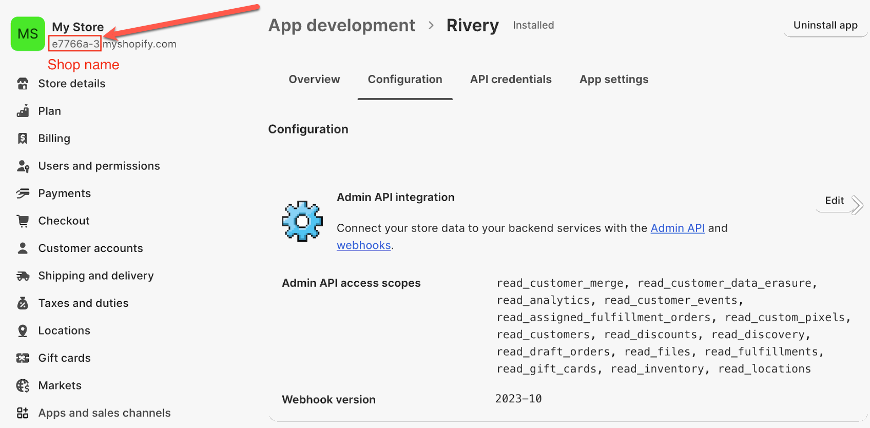 - A Webhook API version selected from the Shopify app's settings (Data Integration supports the following versions: 2021-01, 2021-04, 2021-07, 2021-10)