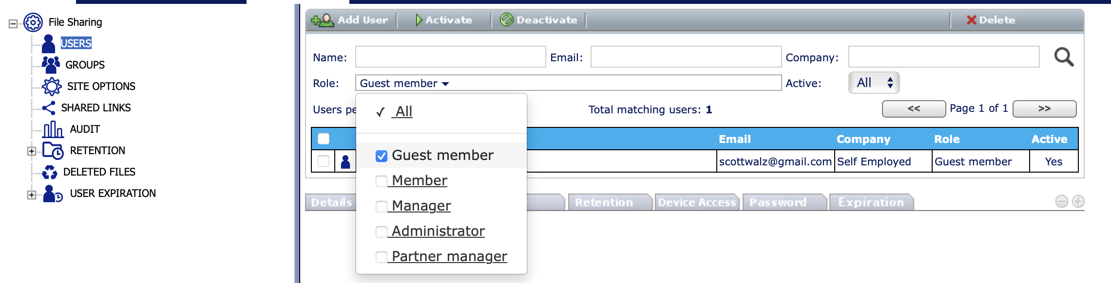 Administrators can manage guest members from the USER section of the Administrator dashboard.